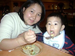 1. 我一人帶著半大不小的兒子回美, 15小時的飛行, 從我打算回香港接他回來我就開始擔心這趟的飛行, 真的是禱告又禱告, 上帝還真是可愛, 居然讓我在登機門前碰到一個朋友, 他跟我是同一班飛機, 只不過我是到逹後老公大人來接我, 然後開3個小時的車回家. 而他因為路程太遠, 所以再轉2次機才能回到家. 這樣的話我就邀請他坐我們的車回家就行啦, 比較方便快捷. 而他呢, 就在飛機上我 "罩" 一下小不點, 讓我能吃口安身飯.