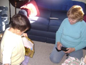 4. 小不點在這2個星期里, 也去造訪了2個美國家庭. 第一是美國爺爺奶奶補送他多的聖誕節禮物.