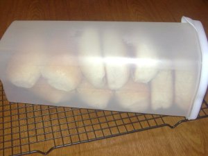 因為是第二天早上才加上配料, 所以面包涼了就赶緊裝入面包盒子里保持面包的濕潤柔軟. 不然會太干喔.
