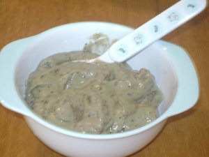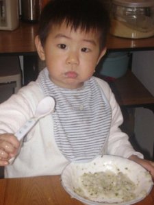 己經給小不點吃了三天這種水果泥了. 他愛得很. 兒子吃得開心, 媽媽弄得甘心.