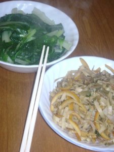 晚餐是—-燙台灣小白 菜 和 橙皮炒四絲!