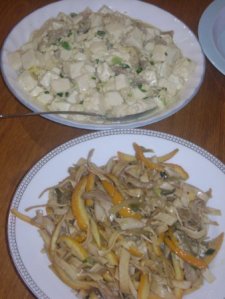 晚餐本來想要炒包心菜的. 只是小不點在閙不吃粥, 我讓他罰坐高腳椅, 并說不吃就沒了, 會一直到9:00PM 才會吃下一餐的, 因為擔心他餓, 唯有晚餐時炒個他所喜歡的豆腐給他吃吧. 還算賞臉, 吃了好多耶…….