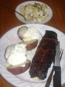 是日晚餐—–燒排骨佐烤馬鈴薯 和 豆腐!