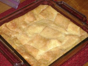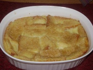 這個面包布丁是老公大人的最愛. 又想著明天上課時帶點東西去吃, 於是就趁要哄小不點腄覺前先弄好, 扔進烤箱我就可以帶小不點去睡覺了. 老公大人今天晚上有消夜了耶….