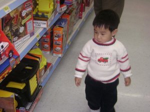 接著又去了 WALMARK. 來這里最重要的是要買咖啡壺. 因之前的被兒子打破了. 兒子在這里的玩具區就像是 "劉姥姥逛大觀園", 開心喔, 一直就在車車區里走來走去不肯走. 這小不點還看中了一台工程車, 沒給他買. 回來居然跑去垃圾袋里拿了之前退掉的工程車盒子, 看著照片就 嘩來嘩去 的. 老公大人看他實在是喜歡, 說還是要給他買啦.