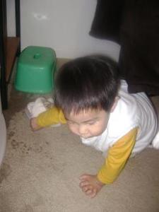 這個小不點雖然小小的, 但他郤是非常知道他闖下的禍喔. 還不會裝作不知道的走開, 通常都會幫忙善後的耶….雖然他的善後都是東搞搞西弄弄, 越幫越忙啦. 但是, 看著他那可愛的動作, 就是覺得 窉心.