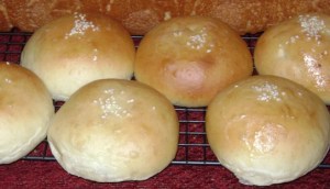6個紅豆面包. 應老公要求做的.他說他晚上要吃面包當消夜, 是面包而不是吐司, 因為吐司還要抹果醬, 面包直接拿起來就可以吃了. 真是懶得可以啊, 抹個果醬有這麼困難嗎????? 真是被寵壞的人……..