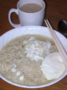 我的早午餐 —— 雙蛋雞蓉泡面 配 咖啡