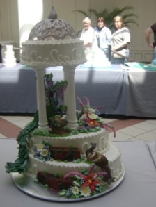 昨天在 mall 里正適逢 精美的蛋糕展. 這還是我第一次看到這麼漂亮的蛋糕放在我眼前耶. 要做到這些水平, 真不知道要下多大的功夫耶…….老公幫我問了他們有沒有開辦 課程, 這樣我這個 糕點愛好者 就可以去學啦. 很可惜的是, 他們是從蠻遠來的, 而他們現在是在做 巡迴展. 所以啊, 想要學還真是沒門路耶…….