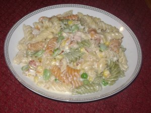 兒子喜歡放奶油和 CHEESE, 因為這樣比較香, 那做媽媽的也就不能怕胖啦, 兒子愛吃比較重要…..