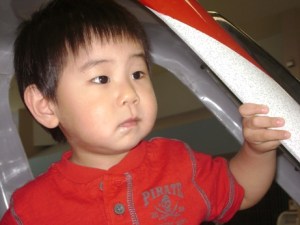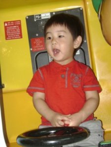 一下子 $0.75就沒有. 不過小不點玩得很高興就是了啦…….他對這個方向盤很有興趣喔, 一邊轉還一邊蹲下去研究研究一下……