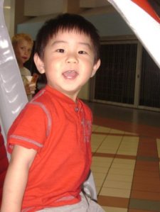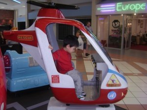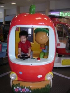 這小不點在店里雖然是蠻乖巧, 沒有東翻西弄的去搗亂別人的眼鏡, 郤是看上了別人放在店里的棒棒糖. 連吃2顆後還吵著要吃第3顆, 這讓我有點受不了了, 於是立即把他帶離店里, 把他帶到他很喜歡的搖搖車, 宁可花個小錢讓他開心玩一下也不想讓他吃太多糖……