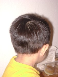 小不點的頭髮好像有點長了, 平時我都是用 "刮刀" 給他用刮剃的, 但是沒2個星期又長長了. 這次來 狠 一點的, 拿出老公大人的 電動理髮刀 來給他剪個徹底啦…….