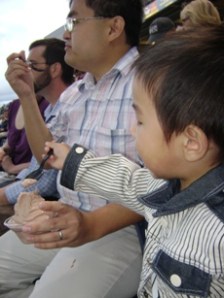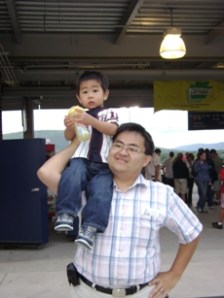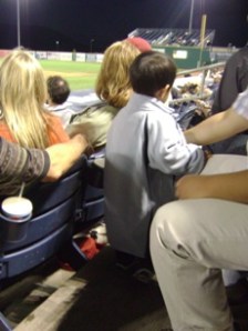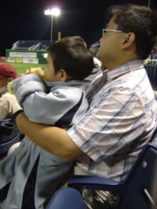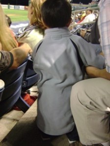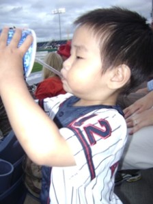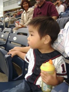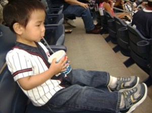 看球賽去囉. 這場球賽老公大人早在一個多月前就計劃好了, 老公大人是棒球迷, 他想要帶兒子去看球賽外還想讓兒子看他人生中的第一場現場的煙火(煙花). (因小不點拍照很不合作, 我唯有把他抱到車上去強迫他囉….)