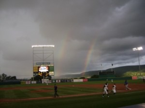 這2條的彩虹讓全球場的人都為之瘋狂, 大家都很興奮的拿著相機狂拍…..我的傻瓜相機也能拍出這畫面, 我很滿意了啦…..