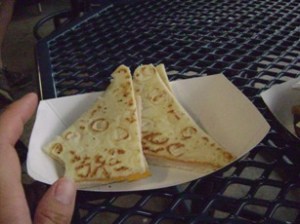 在球場里買的晚餐. 左邊的是我的火雞餅$7.xx, 右邊的是老公大人的漢堡$6.xx, 真是貴得要命啊…..