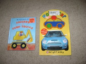 昨天帶小不點去買了這3本車車的書. 小不點從很小就喜歡車, 正確來說是喜歡會動的輪子. 還只有2, 3個月大時, 我爸媽在美國時就常背著小不點到公車站里看公路上經過的車車, 這小不點看得可聚精會神了……