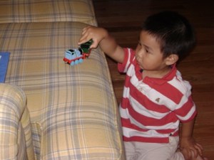 小哥哥跳舞, 小不點就玩火車. 就這4 台的小火車, 小不點也玩了一個晚上……