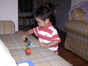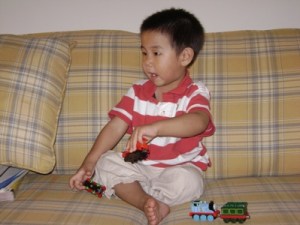 因為前工作超市的老板娘, 她之前為她帶小孩的保母因為老公找到工作要搬到別的州去, 她要求我每個星期四超市進貨時, 幫她帶一下小孩……就這樣, 星期四就帶著小不點到她家去做保母啦……..