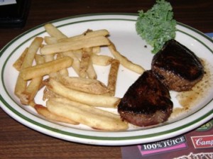 我忘了我點的是什麼牛排了, 反正就是我的牛排太小塊了, 真的小到不行, 而且薯條也只有這几根, 量真的是小器…….我這一份就己經是 $13.99 了啦……我有被坑的感覺耶……