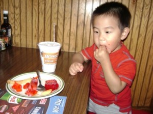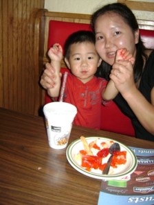 美國小孩是色素寶寶, 你看他吃過後的小手手, 全都是紅色的, 洗過後還是紅紅的……