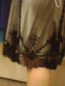 這一件是白內衬黑罩紗, 是我最喜歡的一件, $90. 老公大人說這件沒什麼場合可以穿, 他不建議買…..只是, 我好愛耶……
