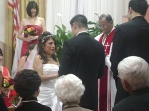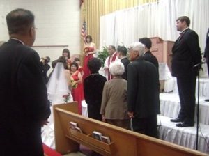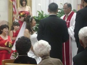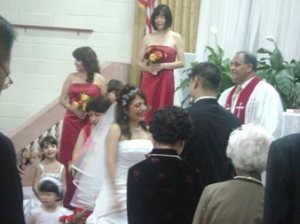 第二天(星期六), 10:00AM開始在教堂行禮. 我和老公大人有遲到了一點點. 不過幸好我們到時才剛開始, 新娘還在外面沒進場…….