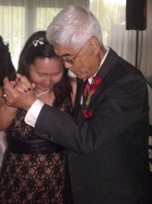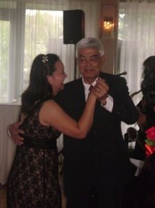 接下來是新郎的父母…再來就是新郎新娘進場, 進場後就由新人帶領開舞. 之後就大家上前去大跳特跳囉. 我和老公大人把小不點扔給哥哥帶, 我們也去浪漫了一下下哩…..