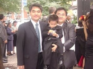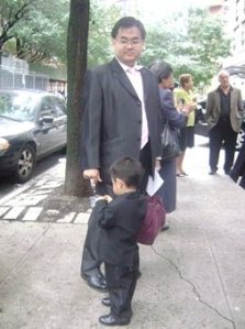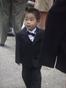 小不點是日穿的可是晚禮服喔. 帥到不行了, 他站在那里, 每一個經過的路人都來上一句.."好可愛喔, 好帥喔…"
