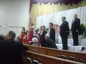 因為小不點又怯場, 不準我待在前面, 我只能抱著小不點站在最後面, 所以我不知道他們現在在干嘛, 反正嘛, 就是牧師在講宣言就是了啦…..
