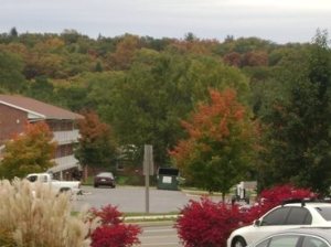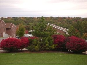 社區辦公室旁. 這里到處都可看到這種小樹, 夏天綠色的到了秋天就變成紅色了, 可到了冬天就變成光秃秃的囉………