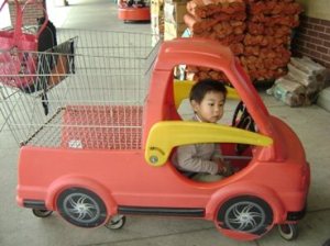 他要坐這種推車的喔…普通的推車不肯坐, 氣死人囉……