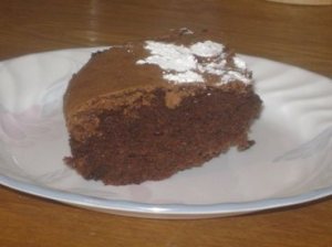 侍涼後迫不及待的切一塊吃了, 沒想到那種可口的香醇的巧克力讓人欲罷不能, 吃完一塊就想要再吃第二塊. 雖然那時已經是半夜了, 我郤是就這樣啃掉了半個6吋的蛋糕了….